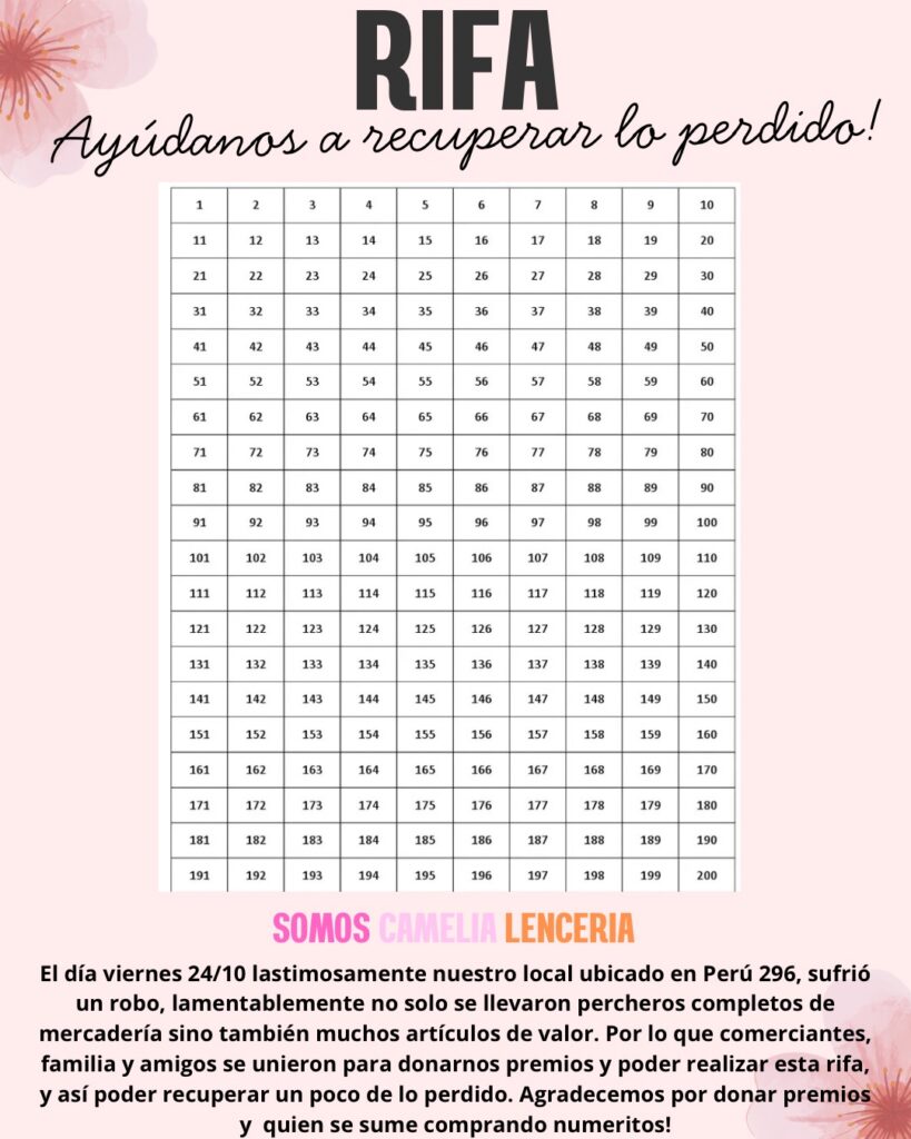 Daiana relató en una entrevista con la FM Red Social 97.9 que recibieron la ayuda de comerciantes para intentar superar este gran perjuicio, también comenzaron la venta de números a un valor de 6 mil pesos cada uno y dos por 10 mil, el sorteo tiene más de 10 importantes premios, la compra se puede coordinar mediante el Instagram @camelia_lenceria_ o por el WhatsApp 2996217669.