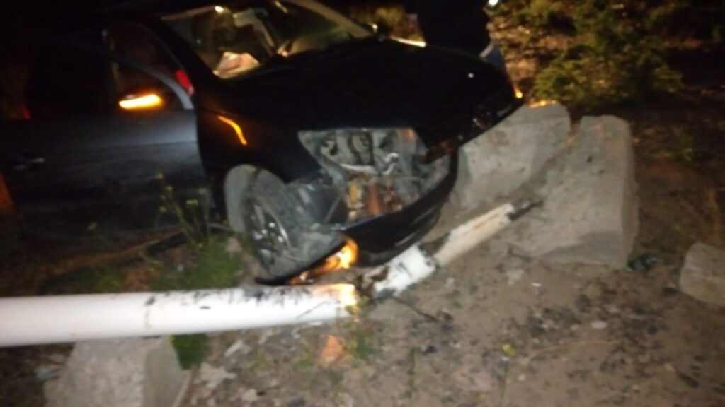 Alcoholizado al volante perdió el control al ingresar a una rotonda de la Ruta 51, chocó contra otro auto y terminó derribando un poste