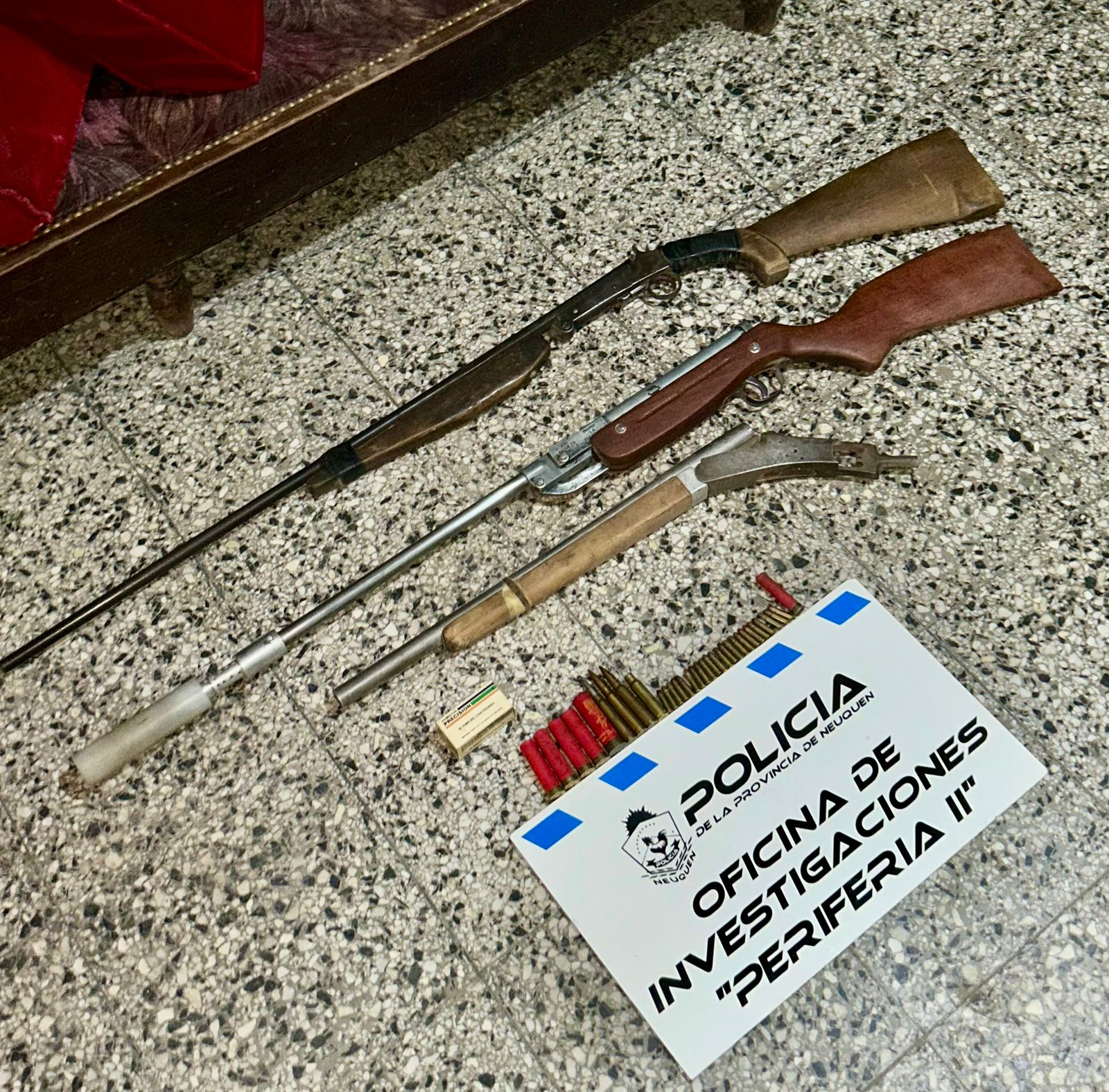 Con la intervención de la Unidad Fiscal de Robos y Hurtos fue autorizado un allanamiento el cual concretó el miércoles 07 personal de la Oficina de Investigaciones de la Zona Periferia II. En el lugar pudieron recuperar el auto el cual estaba tapado con una lona, además procedieron a la demora de un hombre de 70 años de edad y hallaron prendas de vestir, documentación del rodado y también una escopeta calibre 14, una carabina calibre 22, una recortada y cartuchos de distintos calibres como 762 y 36.