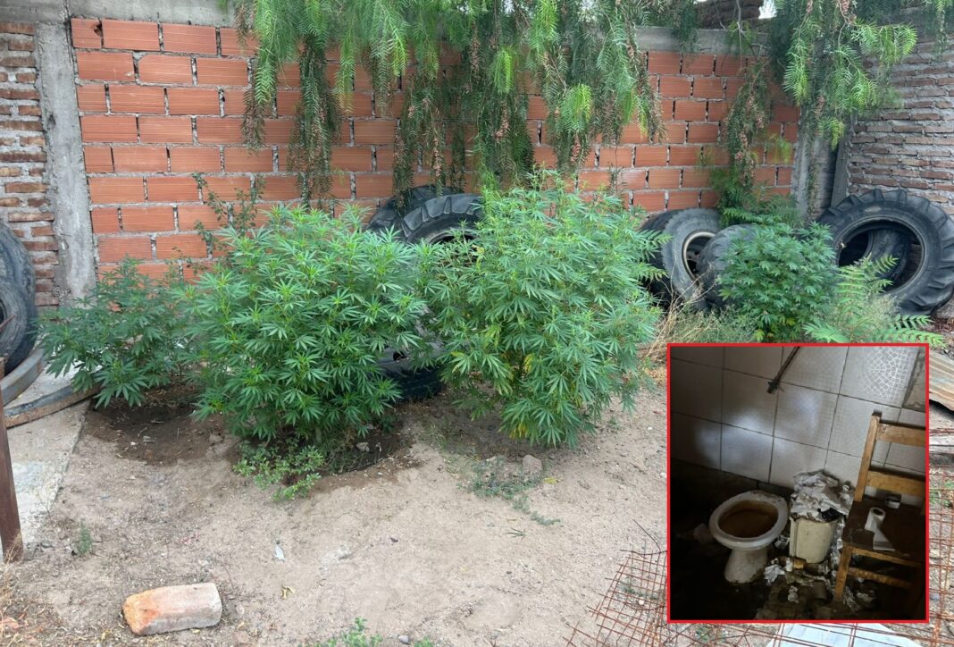 Los uniformados observaron un baño completamente desbordado de materia fecal y restos de papel higiénico, este sin una conexión de agua hacia el inodoro. También cuando revisaron el patio del domicilio pudieron hallar cuatro plantas de marihuana.