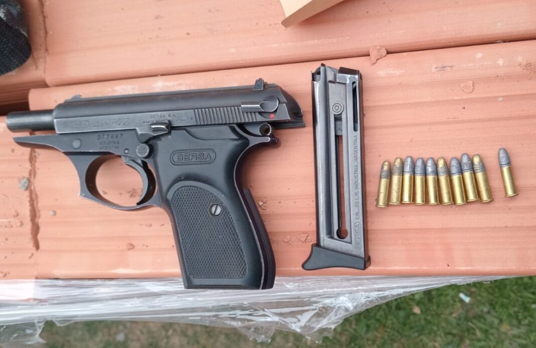 El segundo allanamiento fue realizado minutos más tarde, a las 7:45, en una vivienda ubicada en el Barrio Vista Hermosa, en el lugar identificaron al propietario de 40 años, y a su pareja. Como resultado, secuestraron un arma de fuego calibre 22 marca Bersa con cargador colocado y diez municiones en su interior.