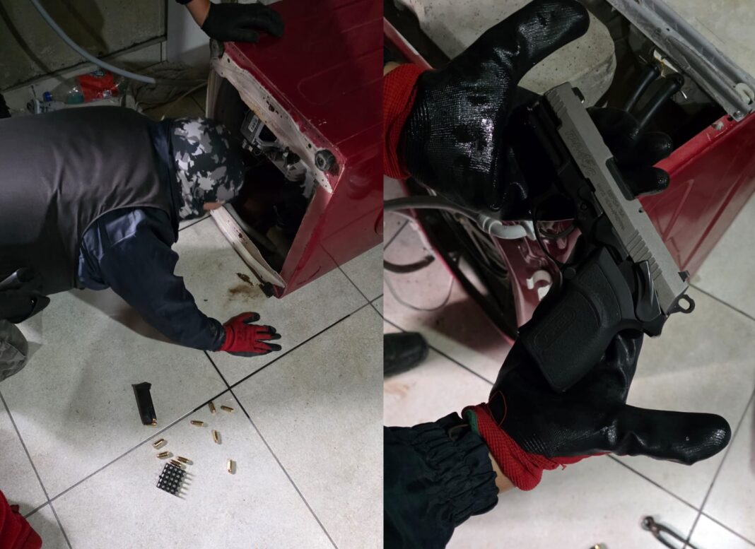 Las diligencias se efectuaron en distintos domicilios del Barrio Vista Hermosa, obteniendo resultados positivos en uno de ellos. En una vivienda ubicada en la calle Ernesto Goebel, donde reside el principal investigado, un joven de 21 años, pudieron hallar ocultas en un lavarropas un arma de fuego marca Bersa calibre 45, de color negro y gris, dos cargadores y 31 municiones del mismo calibre.