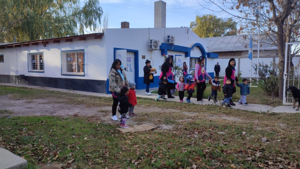 En las calles del Barrio Villa Obrera, en la ciudad de Centenario, se vivió una jornada especial el viernes 17 organizada por el CANM Tío Donald. Bajo la dirección de Zulma Vergara, el equipo educativo del centro viene trabajando desde hace semanas con niños y niñas de las salas de 2 y 3 años para enseñarles el valor de los símbolos patrios, como la escarapela y el himno nacional.
