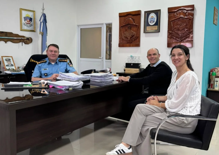 El intendente de Centenario Esteban Cimolai y la secretaria de Gobierno, Rosalí Esteves, se reunieron en las últimas horas con el Jefe de Policía, Comisario General Carlos Tomás Díaz Pérez. Se trata de la segunda visita, oportunidad en la que le agradecieron la concreción de la nueva Comisaría 52, en tanto le solicitaron continuar reforzando la seguridad con mayor presencia policial, más móviles en Centenario, y continuar trabajando en conjunto, en un contexto donde se vienen observando una consecución de hechos delictivos graves.
