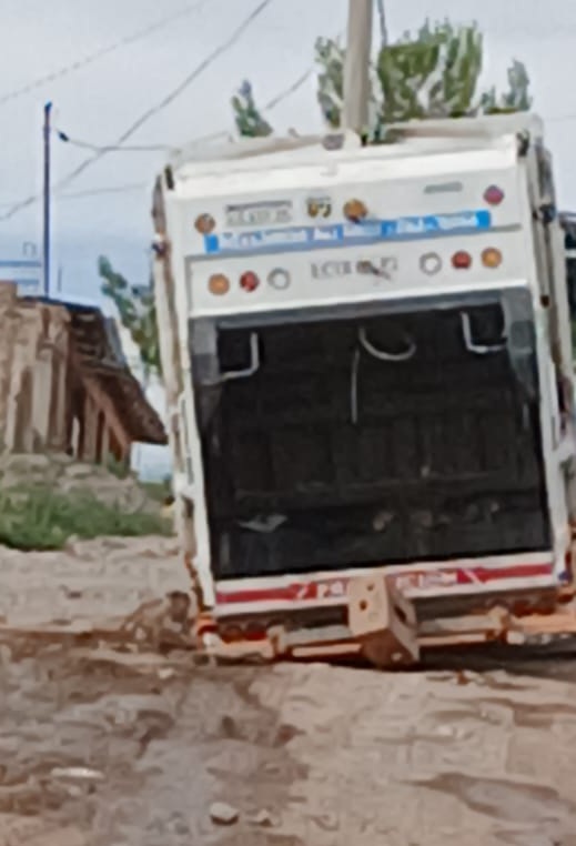 El sábado 13 en horas de la mañana un camión recolector de residuos de la empresa Cliba quedó atascado en el barro de la calle Santiago del Estero, entre Caleta Olivia y Puerto Madryn. Vecinos señalaron que días atrás una máquina rompió una manguera de agua, hubo un arreglo, pero esta volvió a perder.