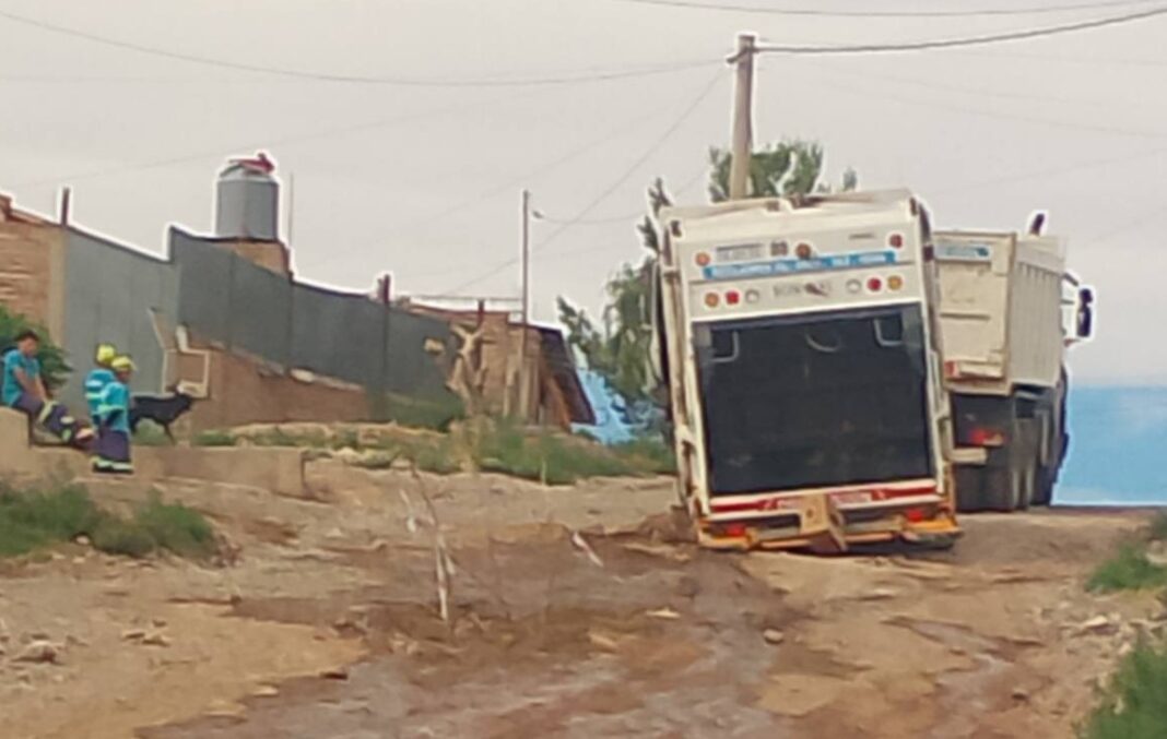 El sábado 13 en horas de la mañana un camión recolector de residuos de la empresa Cliba quedó atascado en el barro de la calle Santiago del Estero, entre Caleta Olivia y Puerto Madryn. Vecinos señalaron que días atrás una máquina rompió una manguera de agua, hubo un arreglo, pero esta volvió a perder.