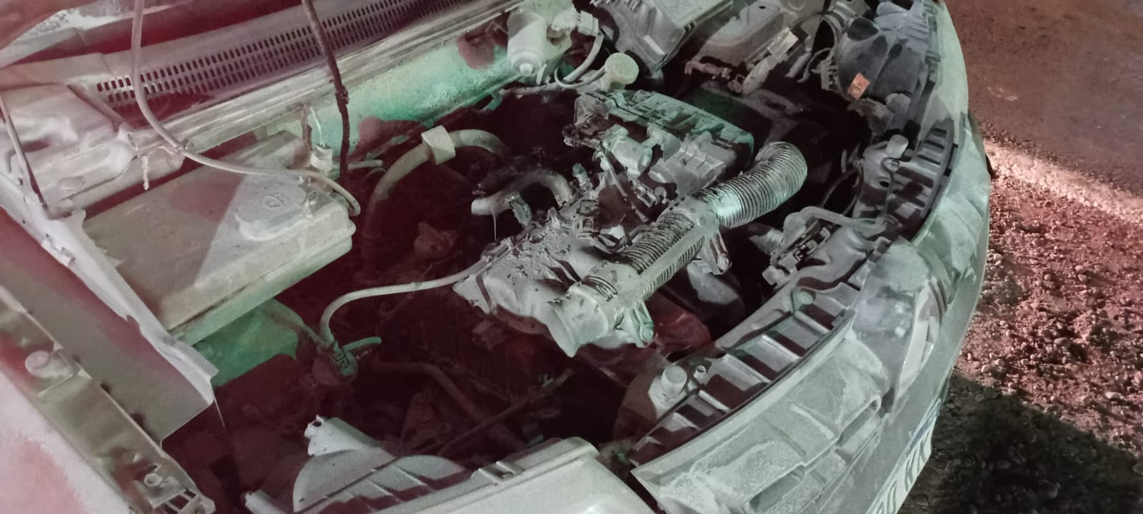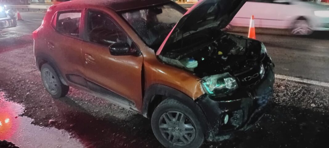 Aunque al parecer hubo algunos reproches entre los conductores todos continuaron la marcha y uno de los autos, un Renault Kwid, conducido por una mujer comenzó a incendiarse debajo del capot. Allí primero intervinieron otros automovilistas con extintores y desconectando la batería para que todo no pasara a mayores.