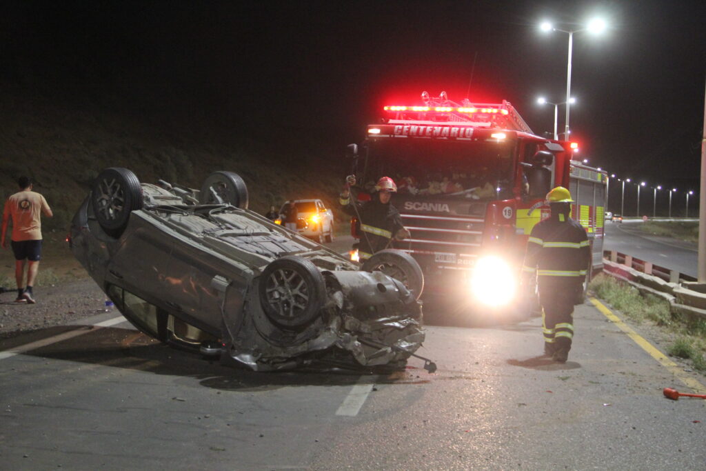 Pero el siniestro involucró a un cuarto auto, un Peugeot 208 conducido por un joven de Centenario que se encontró con este último vehículo realizando un trompo y lo terminó impactando. El City terminó volcando y quedó atravesado sobre la calzada.