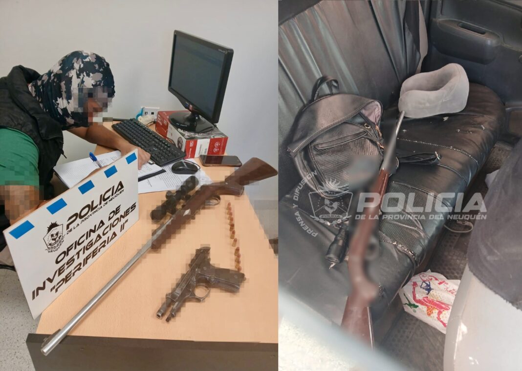 El vehículo fue interceptado a una cuadra y media, demoraron a su conductor y al detectar un arma larga visible desde la ventanilla procedieron luego a una requisa y encontraron en el interior una carabina calibre 22, una pistola calibre 9 mm con numeración limada y un cargador con 11 cartuchos.
