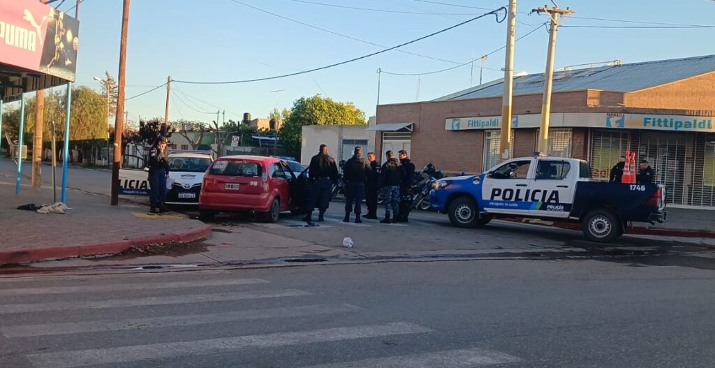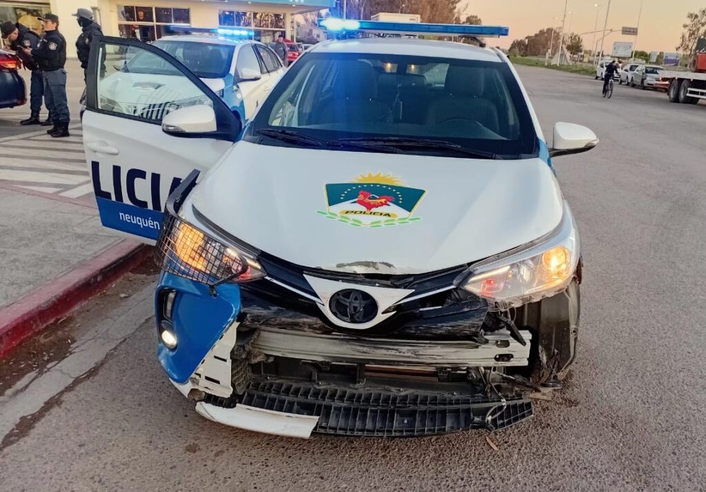 Ante esto los móviles de las comisarías Quinta y 52 de Centenario se sumaron al operativo cerrojo y en la zona de la primera rotonda el vehículo realizó maniobras indebidas y luego de impactar contra el móvil JP 1772 en el Loteo Nueva Vista, siguió por Antártida Argentina, Chile y después por Ingeniero Ballester.