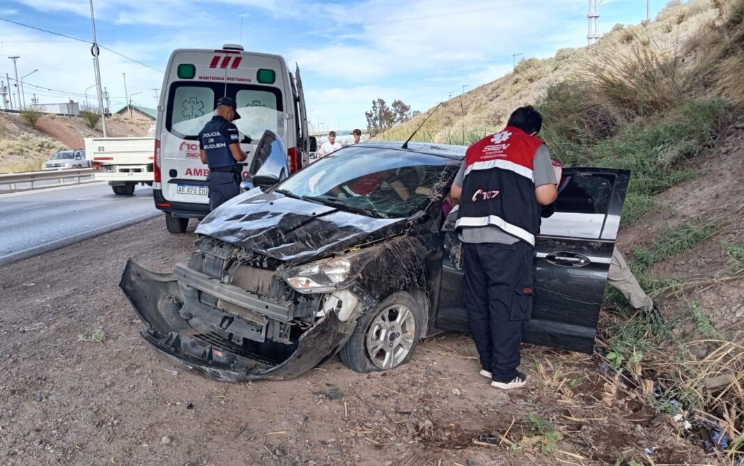 Una mujer resultó con lesiones a raíz de un fuerte choque ocurrido en la Ruta 7, zona de la Avenida Raúl Alfonsín, el jueves 13 pasadas las 15 hs. Un Toyota Corolla conducido por un joven de 21 años de Cipolletti circulaba a alta velocidad según refirió el propio conductor, tras perder el control choca contra la parte trasera a un Ford Ka en el que iba una mujer de 80 años domiciliado en Neuquén.