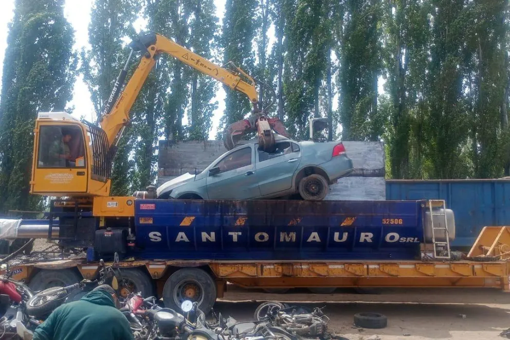 El ministerio de Seguridad de Neuquén llevó adelante la compactación de 1.230 vehículos, entre autos y motos secuestrados en distintos operativos viales que nunca fueron reclamados. Del total, 230 eran automóviles y 1.000 motocicletas, lo que implicó el retiro de 20 camiones con material ferroso.