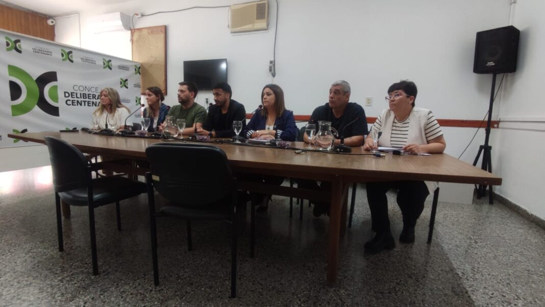 El jueves 20 en el Concejo Deliberante de Centenario fue realizada una conferencia de prensa por parte de los concejales para referirse al Código Urbano Rural y el debate que se iba a llevar adelante el próximo 25 el cual quedó suspendido. Estuvieron presentes Darío Reyes, Lucía Matas, Sebastián Krapp, Fabio Valdebenito, Nancy Bibow y Daniela Machado, también la secretaria de Ordenamiento de Planificación y Ordenamiento Territorial, Eugenia Jafella y la subsecretaria Cecilia Barrera.