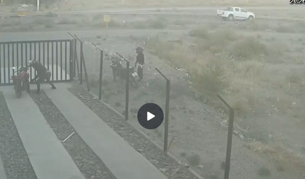 Con una tijera cortapernos abrieron el alambrado a pesar de que el lugar está ubicado a la vera de la Ruta 7 y había un importante movimiento el viernes alrededor de las 7:10 de la mañana. Por momentos simulaban como estar reparando algo hasta que finalmente uno de ellos ingresó y sacó del predio la moto del trabajador.