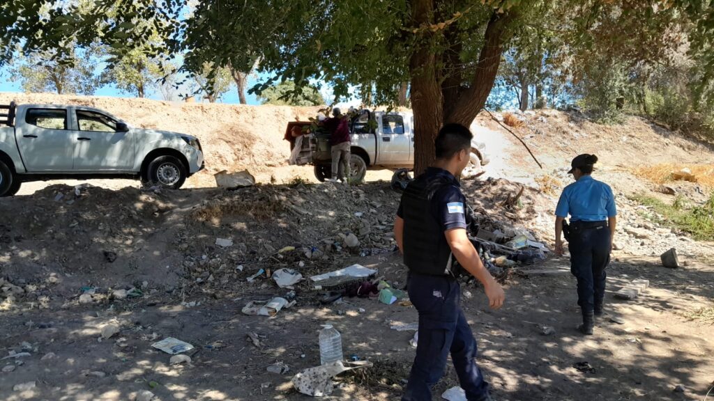 El reclamo de vecinos de dos barrios de Centenario motivó en un operativo policial y del municipio para desmantelar un aguantadero de trapitos en un sector del barranco, en el límite entre Los Pioneros y las 173 Viviendas.