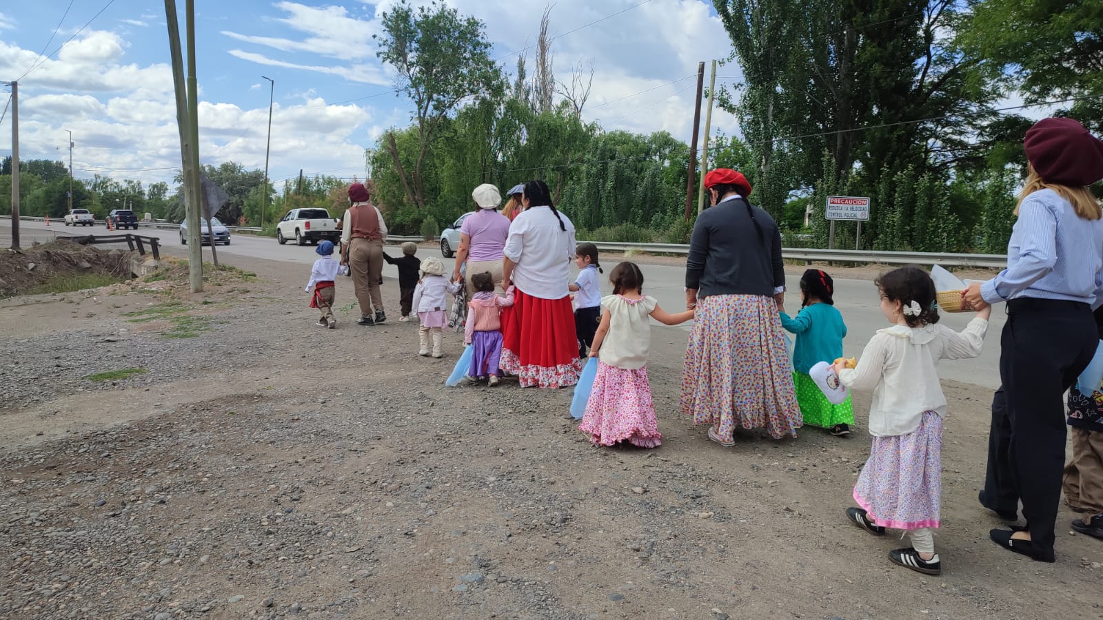 El Centro de Atención a la Niñez Municipal (CANM) “Tío Donald” de Villa Obrera celebró el Día de la Tradición Argentina el lunes 10 junto a la comunidad en el puente Centenario-Cinco Saltos. Las educadoras junto a los alumnos llevaron música folklórica, tortas fritas y yuyos para el mate para repartir entre los automovilistas.