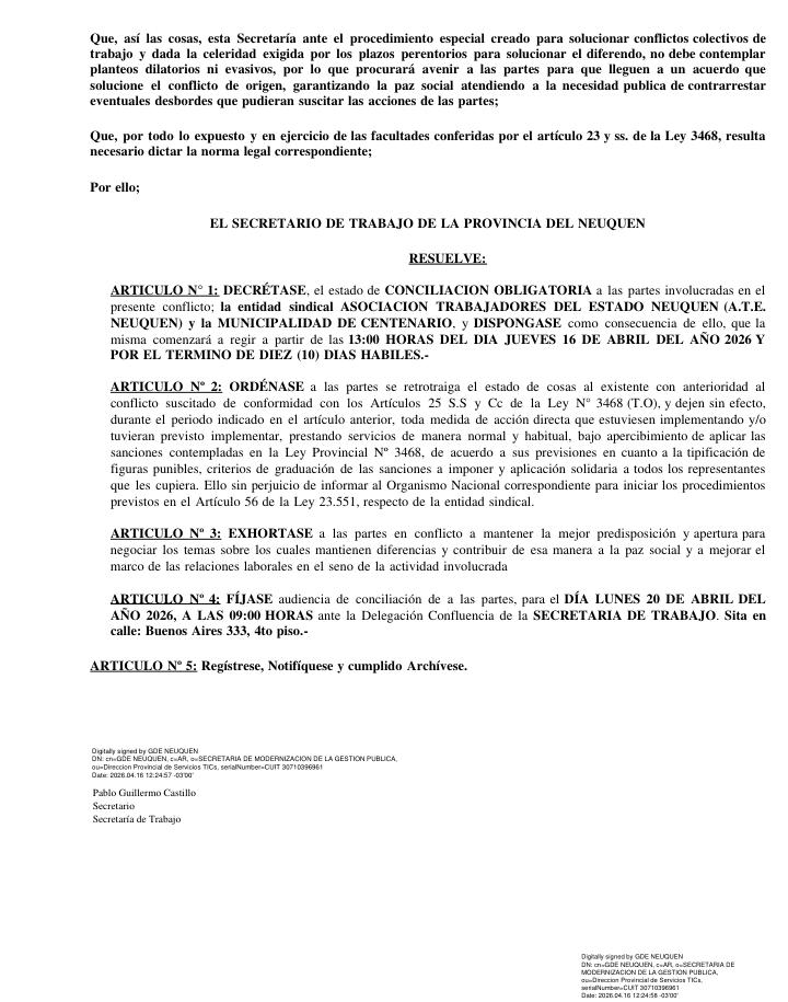 Si bien todo indicaba que la medida podía repetirse el viernes, hubo finalmente una conciliación obligatoria dictada por la Subsecretaría de Trabajo de la Provincia. Regirá por el término de 10 días y el próximo lunes 20 de abril ambas partes deberán reunirse en la sede de la calle Buenos Aires 333 a la hora 9.