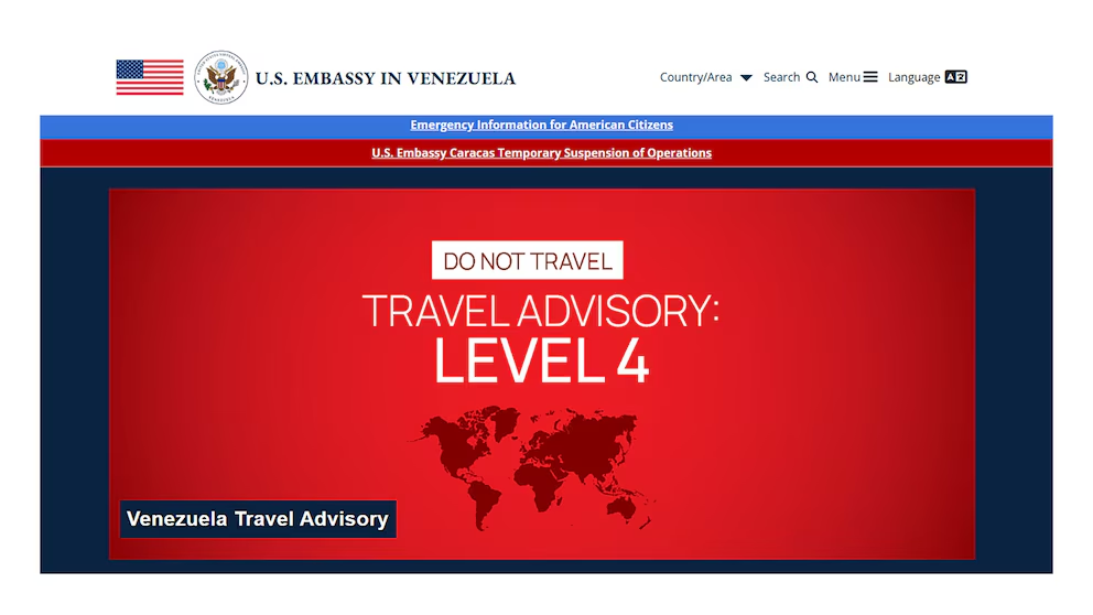 Esta comunicación, publicada en el sitio oficial de la sede diplomática, subrayó que la advertencia corresponde al nivel 4, el más elevado en el sistema de alertas del Departamento de Estado.
