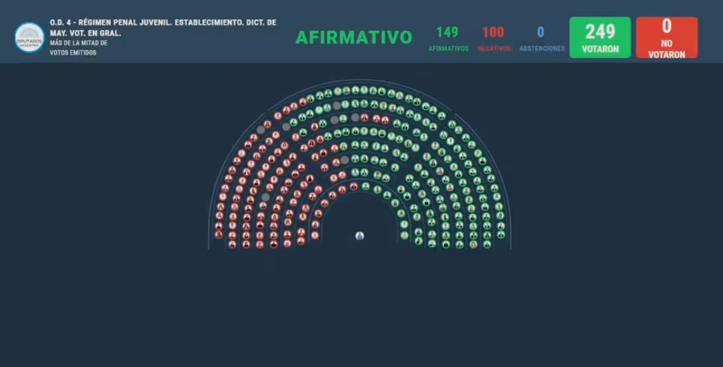 El nuevo Régimen Penal Juvenil obtuvo 149 votos a favor, gracias al apoyo de LLA, el PRO, la UCR, Provincias Unidas, MID, y otros bloques provinciales