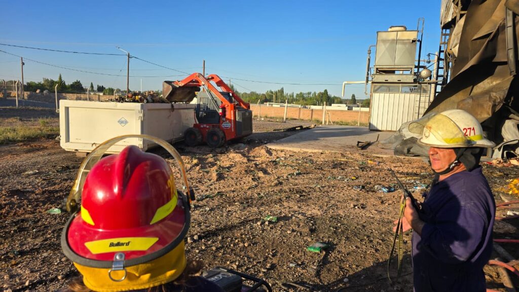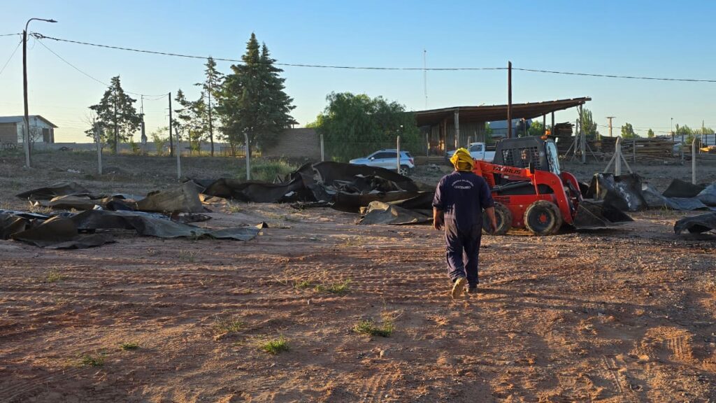 Bomberos voluntarios con la utilización de maquinaria gestionada por el Banco Patagónico de Alimentos pudieron retirar durante varias horas escombros del interior de la estructura y así evitar nuevos focos. A más de una semana de ocurrido, el municipio no intervino en el lugar a pesar de que el predio le pertenece.