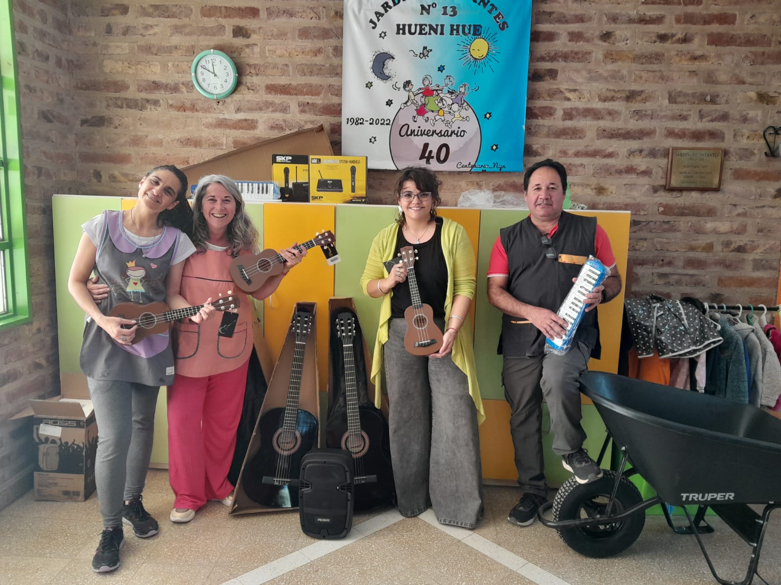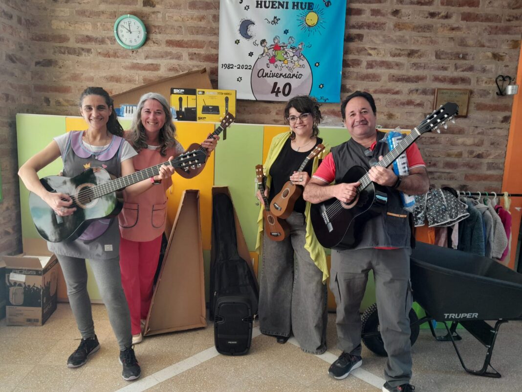 Una gran noticia para la comunidad educativa del Jardín N°13 “Hueni Hue” de Centenario fue la entrega de instrumentos musicales y herramientas por parte del Distrito de Educación VI, esto luego de los robos y daños sufridos semanas atrás en el edifico de la calle Honduras. La directora, Viviana Maschio, contó en diálogo con la FM Red Social 97.9 que están: “Muy contentos por las buenas noticias, vinieron las directoras del distrito y recursos humanos y nos trajeron los instrumentos que nos habían sustraído en septiembre, para los profes de música es una extensión de sus cuerpos las guitarras, es un momento que el jardín disfruta porque cantamos, bailamos, fueron dos guitarras, ukeleles, melódicas y otros elementos como utensilios y herramientas de patio”.