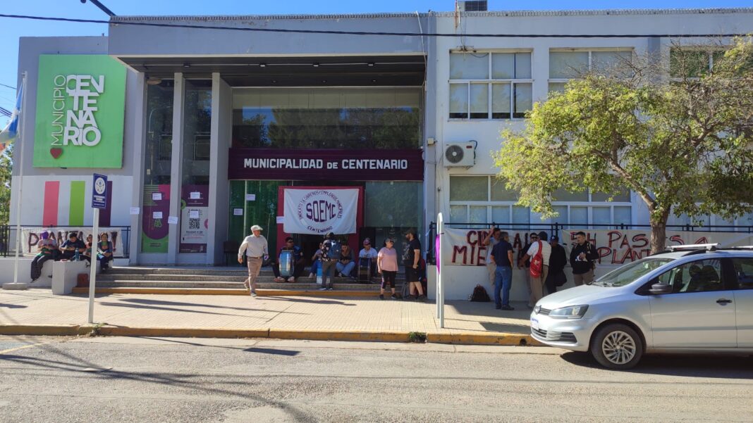 El paro del Sindicato de Obreros y Empleados Municipales de Centenario repercutió en distintos sectores donde no hubo atención al público el jueves 11. En horas de la mañana se concentró en el edificio de la calle Intendente Pons para reclamar por los pases a planta permanente de 54 empleados.