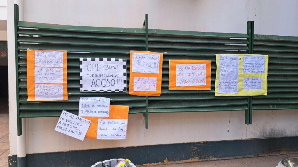 Según relató, las denunciantes no sabían que estaba nuevamente en la escuela: “Ayer y hoy siguieron las provocaciones, amenazando a los jefes de departamentos con que los que no iban a una reunión iba a haber un acta. Nosotros estamos autoconvocados, esperamos que el Consejo tome una sanción ejemplar, casi toda la escuela ha sufrido algún tipo de maltrato, nuestras compañeras están de licencia algunas y hay profesores que han renunciado para dejar de recibir este destrato, él siempre se jactó es que tiene sus contactos y nos amenazó con eso, al que no le guste trabajar acá que se vaya y que su amigo es el señor de técnica y que firma la disposición que lo da por culpable pero que vuelva trabajar” indicó.