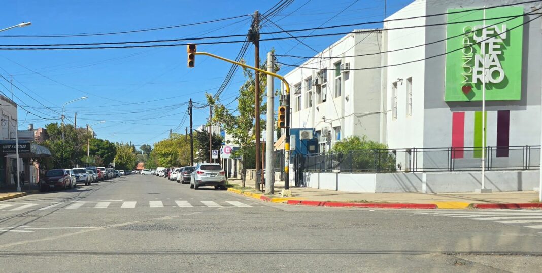 Los semáforos ubicados sobre la esquina de las calles San Martín e Intendente Pons, en el Casco Viejo frente a la Municipalidad de Centenario, no funcionan desde hace varios días y los vecinos advierten el peligro que esto representa y por la madrugada hay picadas de autos y motos indicaron.