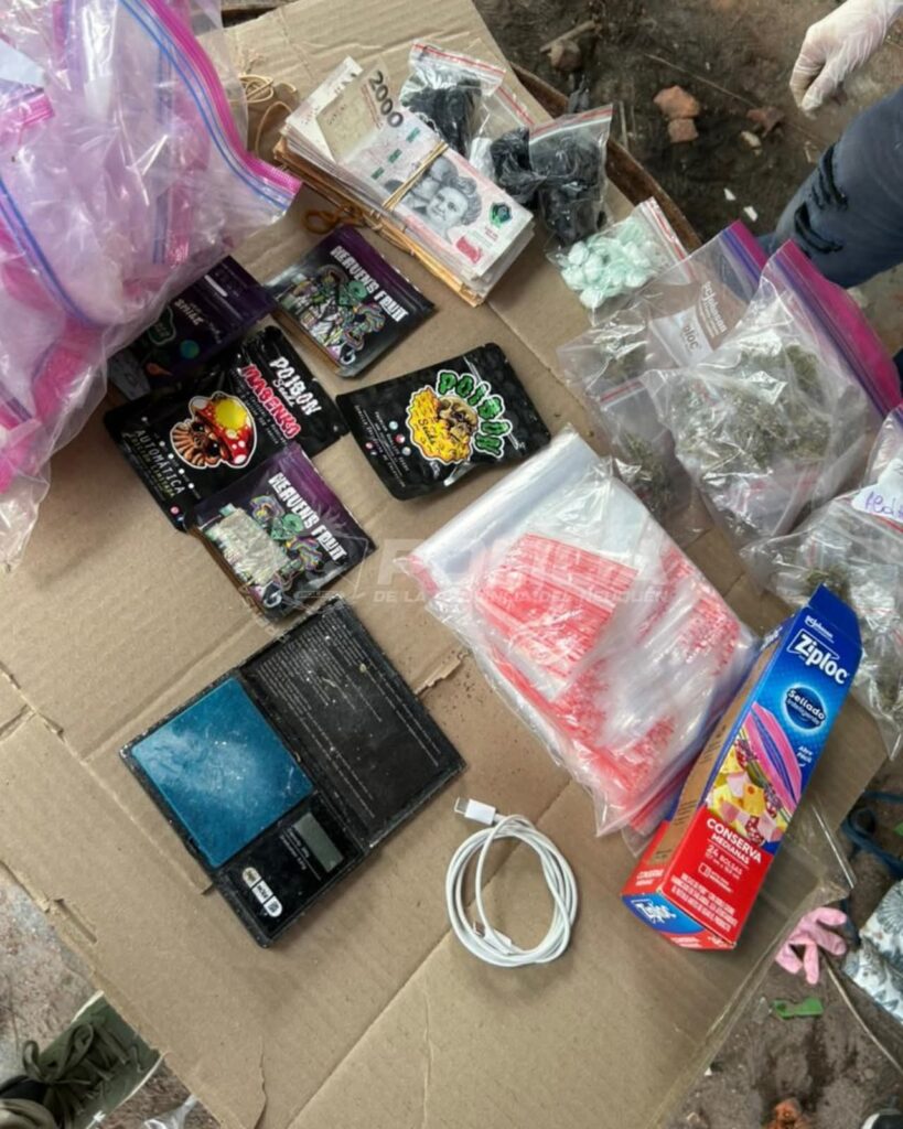 En su interior había 56 envoltorios con una sustancia similar a cocaína, 43 con cannabis sativa -marihuana- y más de 400 mil pesos argentinos en efectivos, además de una balanza de precisión.