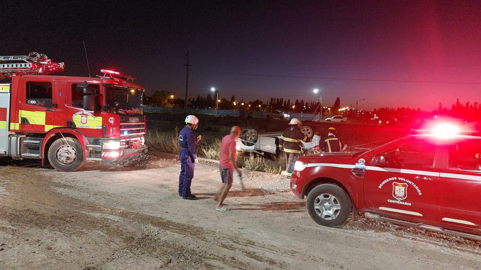 A los pocos minutos arribaron bomberos voluntarios que habían sido alertados, luego personal policial de Tránsito y también intervenía la Comisaría 52 ya que se aguardaba el secuestro del vehículo el cual se desconocía aún si también era robado pero tenía patentes diferentes colocadas y en su interior estaría el televisor que robaron en el domicilio.