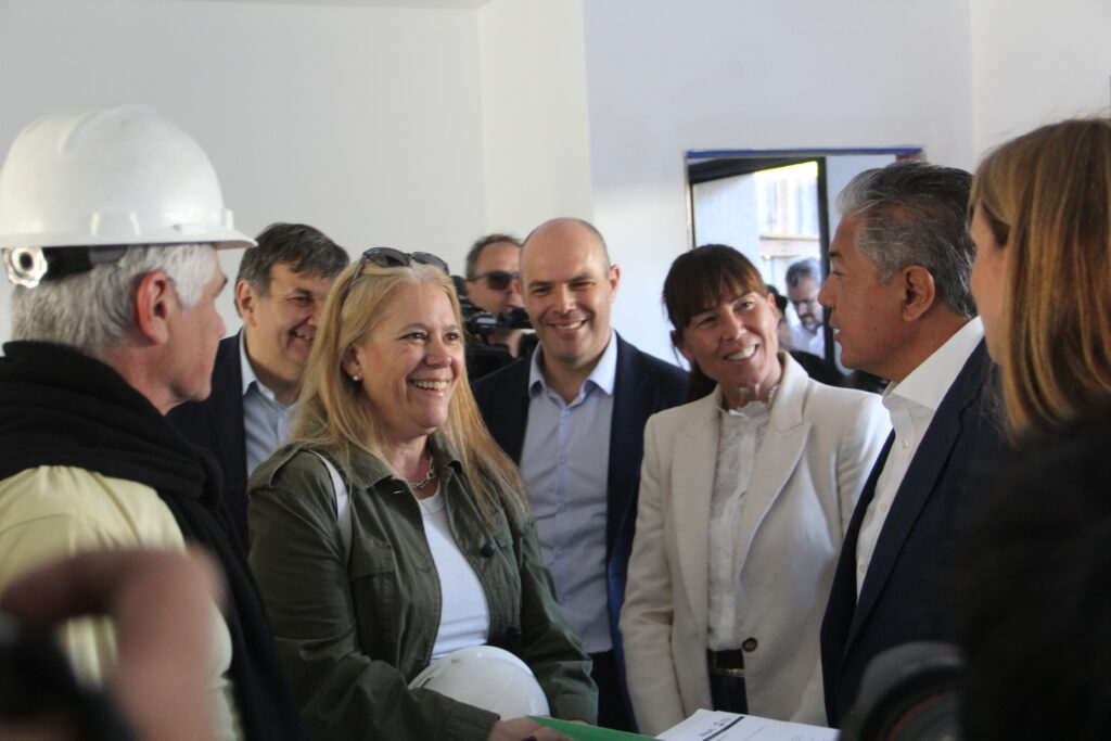 La primera recorrida fue por el Cine San Martín, sobre calle Primeros Pobladores, el cual tiene un importante avance en su remodelación y puesta en valor. Son tres bloques funcionales, dos sobre la línea municipal de dos pisos y el otro que es la vane de la sala de cine.