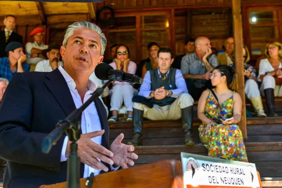 El gobernador estuvo acompañado el secretario de agricultura, ganadería y Pesca de la Nación, Sergio Iraeta y el presidente de la Sociedad Rural Argentina, Nicolás Pino y la presidente de la Sociedad Rural del Neuquén, María Cecilia de Larminat quién abrió las exposiciones.