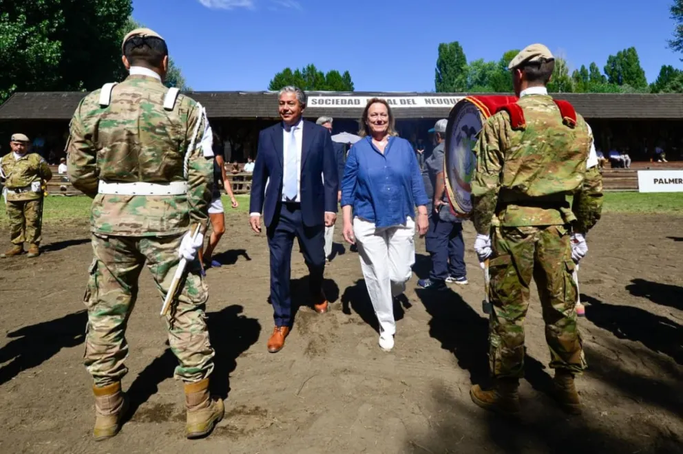 El acto estuvo acompañado por la presidenta de la Sociedad Rural del Neuquén (SRN), Cecilia De Larminat, y el presidente de la Sociedad Rural Argentina (SRA), Nicolás Pino. Asistieron la vicepresidenta primera a cargo de la Legislatura del Neuquén, Zulma Reina, los ministros Guillermo Koenig (Economía, Producción e Industria), Lucas Castelli (Trabajo y Desarrollo Humano), Matías Nicolini (Seguridad), Tanya Bertoldi (Infraestructura) y Leticia Esteves (Turismo, Ambiente y Recursos Naturales). También estuvieron presentes el intendente de Junín de los Andes, Luis Madueño, la diputada nacional Karina Maureira, y el senador nacional Pablo Cervi.