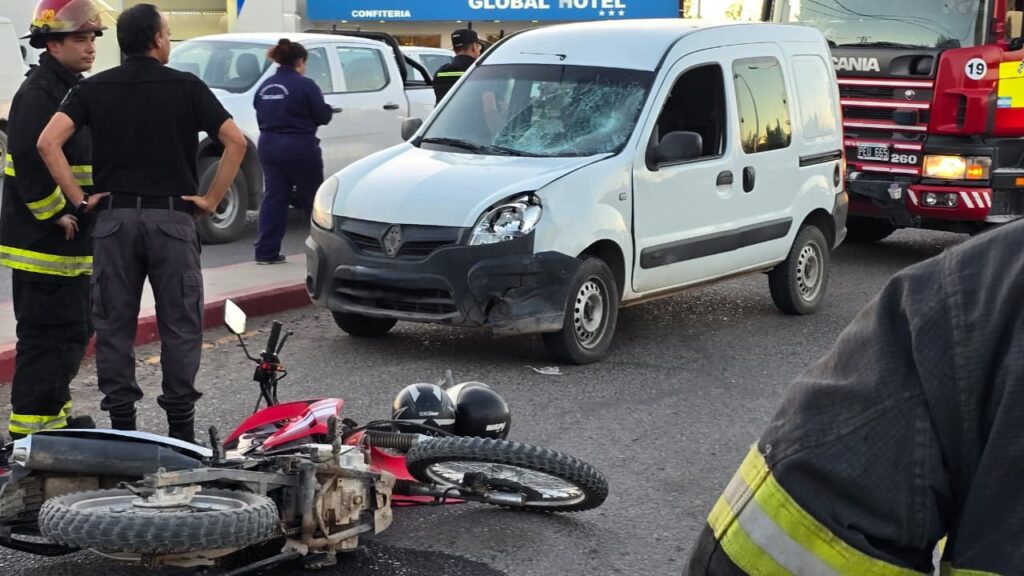 Un violento choque ocurrió en la Ruta 7 cerca de las 18:50 horas del viernes 27. Una Renault Kangoo y una motocicleta Corven Triax 150 cc impactaron a la altura de la primera rotonda de Centenario.