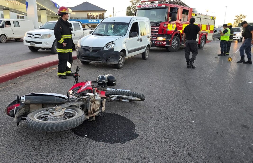 Un violento choque ocurrió en la Ruta 7 cerca de las 18:50 horas del viernes 27. Una Renault Kangoo y una motocicleta Corven Triax 150 cc impactaron a la altura de la primera rotonda de Centenario.