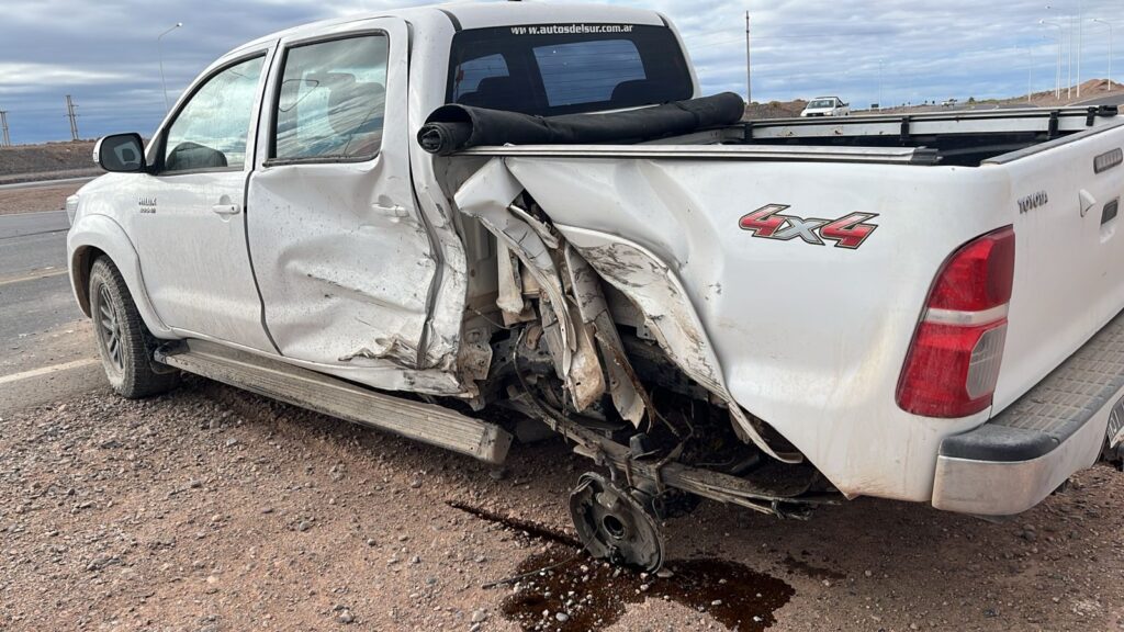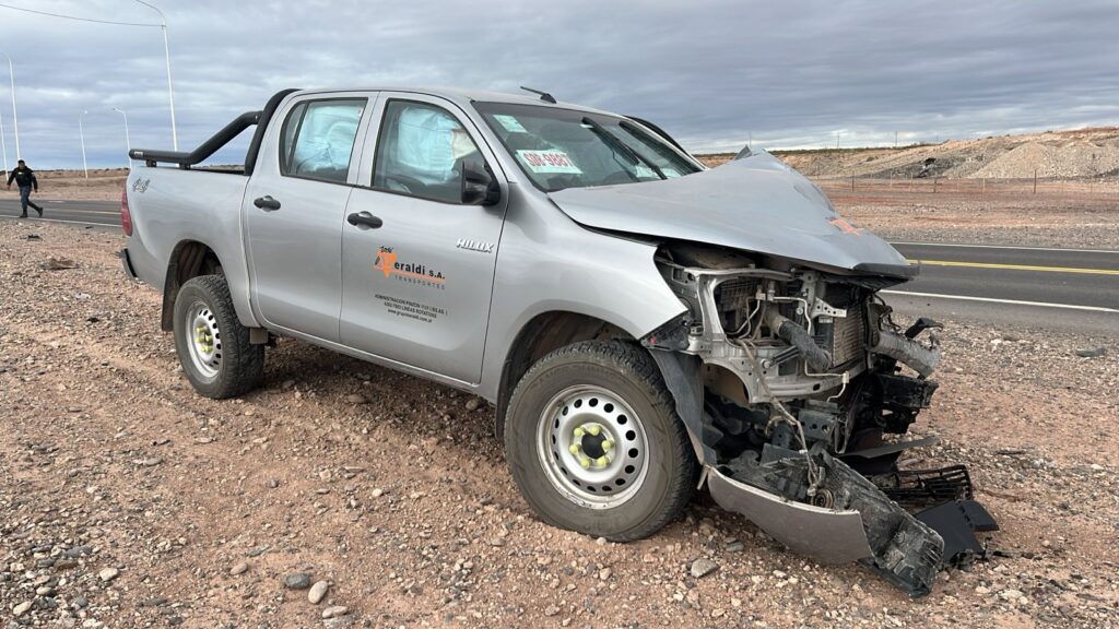 En la mañana de elecciones el domingo 26 un fuerte choque entre dos camionetas ocurrió pasadas las 9 hs. en Ruta 67 y acceso a Centenario por calle Benito Machado. Una Toyota Hilux de una empresa de transporte circulaba con sentido sur-norte y por motivos que se investigan impactó contra el lateral izquierdo de una camioneta de la misma marca y modelo que accedía a la calzada.
