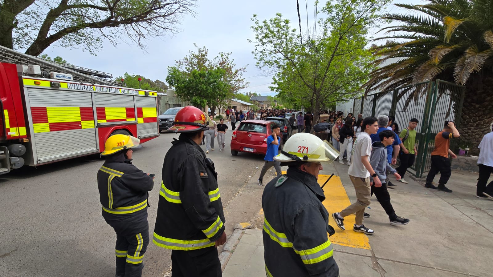 Inmediatamente una unidad que se encontraba finalizando una intervención por un choque entre vehículos en la meseta se dirigió al lugar, también lo hicieron efectivos policiales de la Comisaría Quinta a cargo de los subcomisarios Navarrete y Valdez. El protocolo fue activado indicó la directora, Ivana Humar, a CD y los cerca de 600 estudiantes fueron evacuados hacia la calle Brasil la cual debió ser cortada también por Defensa Civil, a su vez el pequeño edificio de la Escuela 365, que está contiguo, también fue evacuado.