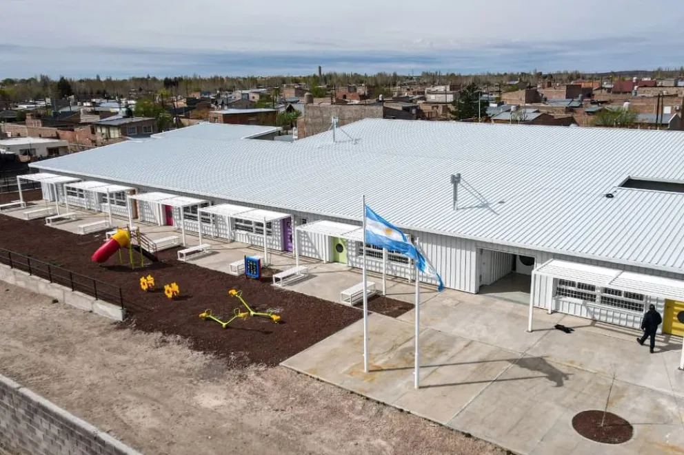 La escuela infantil N°35 ubicada en barrio Ezio Zani de Cutral Co, es un edificio nuevo para un trayecto formativo de nivel inicial que hasta hoy se desarrolla en la escuela primaria N° 143, con una matrícula de 68 estudiantes en salas de 4 y 5 años. La inversión de la obra fue de un saldo renegociado de 1.010.922.811 pesos (presupuesto de diciembre de 2024).