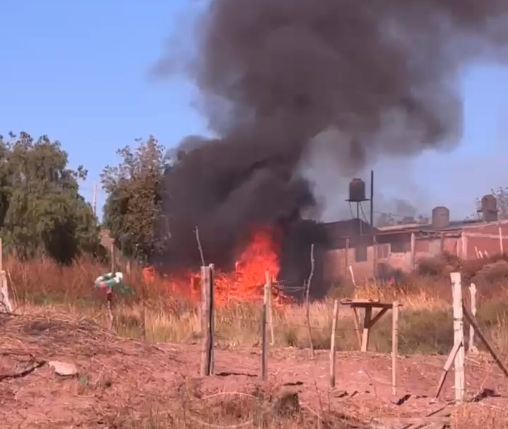 Un incendio intencional consumió una precaria casilla que había sido instalada en unos terrenos de las calles Córdoba y Puerto Madryn, sector en el que la semana pasada un grupo de personas había tomado tierras.