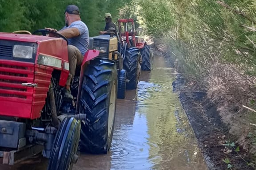 La calle rural 9 pasó de las filtraciones de agua de los canales a inundarse por completo. El lunes 19 un tractor quedó atascado a primera hora y fueron los propios chacareros que debieron sacarlo antes del arribo de Defensa Civil.