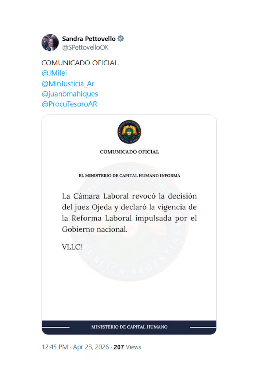 Hasta tanto se produzca esa definición, la reforma laboral se mantiene vigente en los términos establecidos por la ley. La discusión judicial sigue en curso y no se descarta su eventual tratamiento por la Corte Suprema en instancias posteriores.