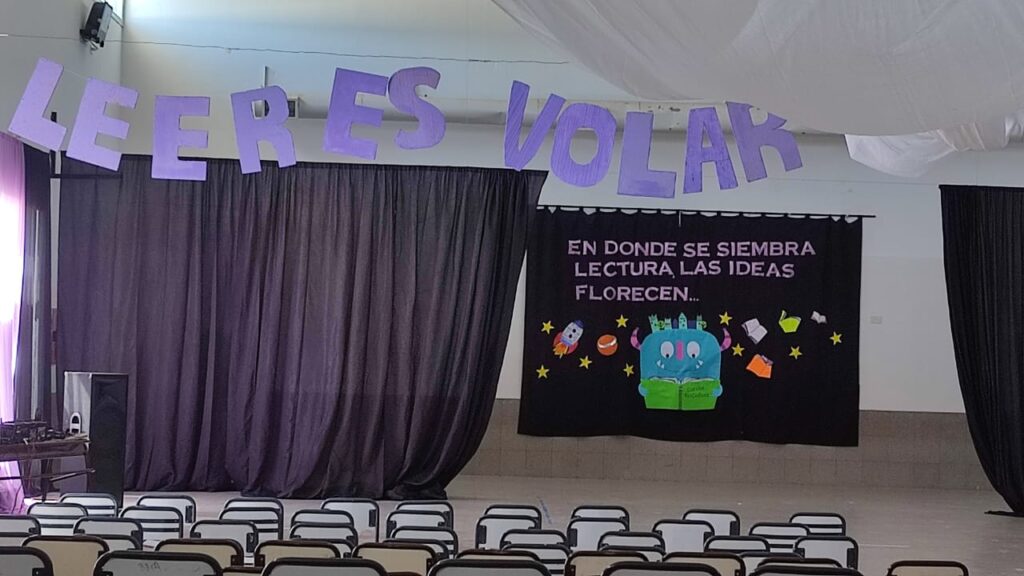 Silvia Fuentealba, directora de la institución, señaló en diálogo con la FM Red Social 97.9 que era importante un proyecto: “que rompiera con las pantallas que en pandemia no nos ayudaron, había que retomar el libro, la lectura, la escucha, a leer se aprende leyendo y a escribir escribiendo. Participan las familias hoy -por el martes- fue la presentación con la presentación de obras, de títeres, en base a lo leído por nuestros estudiantes, el miércoles segundo ciclo, el jueves tercer ciclo y el viernes se abre a toda la comunidad para hacer recorrido en los stands”.