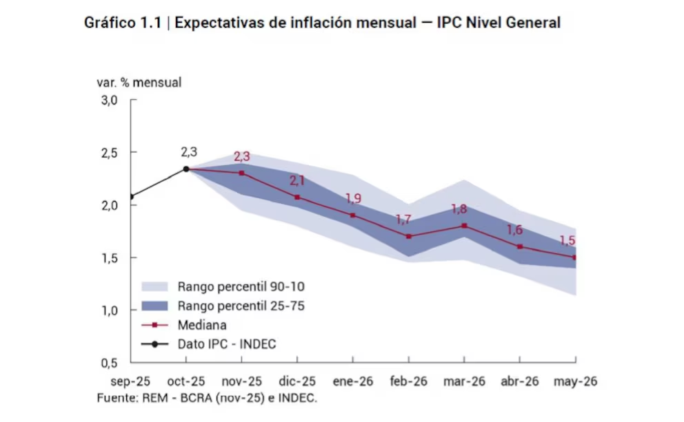 Para diciembre estiman que los precios correrán a un 2,1% a nivel general y ya enero de 2026 y hasta abril la inflación oscilaría entre 1,9% y 1,5%, de acuerdo a las consultoras que releva el BCRA de forma mensual.