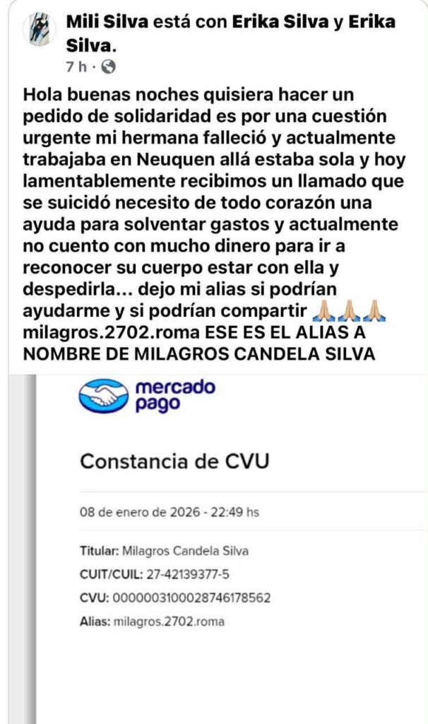 La comisaría local se comunicó con las de esa provincia para anoticiar a familiares del triste desenlace. Una de sus hermanas solicitó colaboración para poder viajar a la región ya que no cuenta con los recursos necesarios.