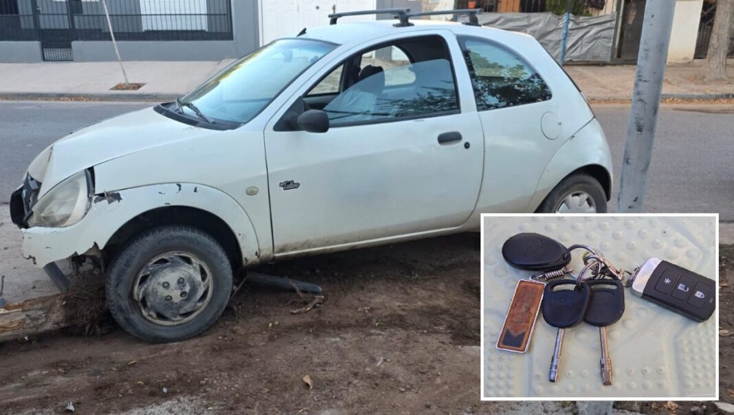 Las llaves del Ford Ka chocado estaban escondidas en un árbol de la Plaza Chos Malal