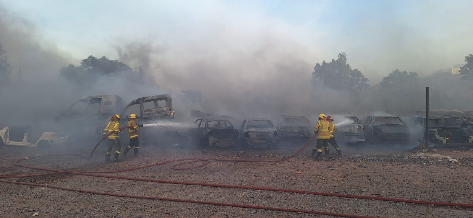 En la calle Entre Ríos al fondo, zona autopartes “Chile loco”, el trabajo fue preventivo mientras bomberos voluntarios combatían el incendio que destruyó 40 vehículos y debido al tóxico humo debieron evacuar a 8 personas adultas mayores de un geriátrico ubicado a una cuadra.