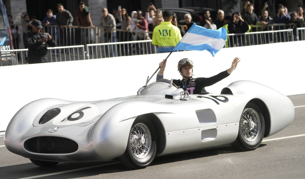 Colapinto disfrutó de recorrer las calles de Palermo bajo la réplica realizada por el empresario argentino Carlos Di Forti, la cual reproduce el histórico modelo con el que Fangio fue campeón mundial en 1954 y 1955. En la exhibición, el auto —diseñado para alcanzar 250 km/h— circuló a una velocidad controlada, en sincronía con el espíritu celebratorio de la jornada. El monoplaza tiene un motor Mercedes más moderno que el original y también se exhibe en el museo de Fangio.