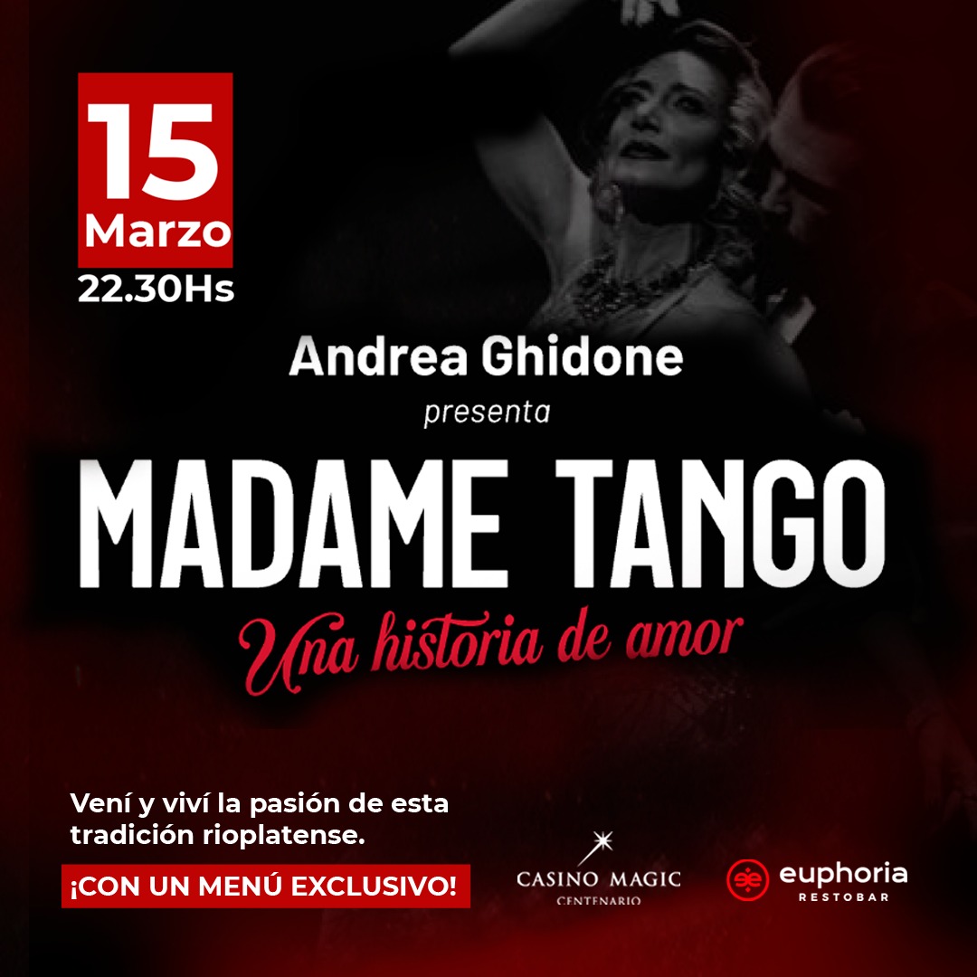 El show de tango más visto por los argentinos, Madame Tango, regresa a Centenario con una propuesta de alto nivel artístico. El 15 de marzo a las 22:30 horas, el famoso musical se presentará con entrada gratuita en Casino Magic Centenario, cautivando a todos los amantes del tango y la pasión.