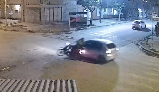 El viernes 03 pasadas las 23:20 horas un choque ocurrió en la transitada esquina de Cuba y Lácar, en el Barrio Juan Manuel de Rosas de Centenario. A través de una cámara de seguridad se pudo observar con claridad como una moto conducida por una joven avanza por Cuba y por la otra calle transitaba un Volkswagen Gol Trend.