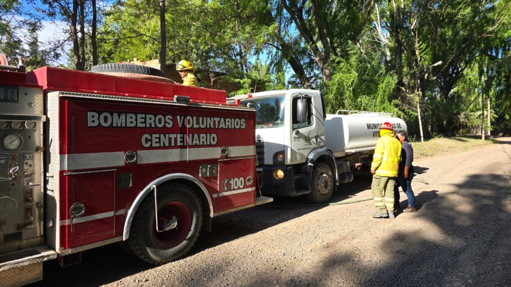 El viento era notorio como durante toda la tarde, una dotación de bomberos voluntarios fue alertada y acudió en el móvil 12 para iniciar los trabajos y contener el fuego antes de que avance hacia otras chacras. También un camión cisterna con un chofer del municipio llegó para abastecer a la autobomba.